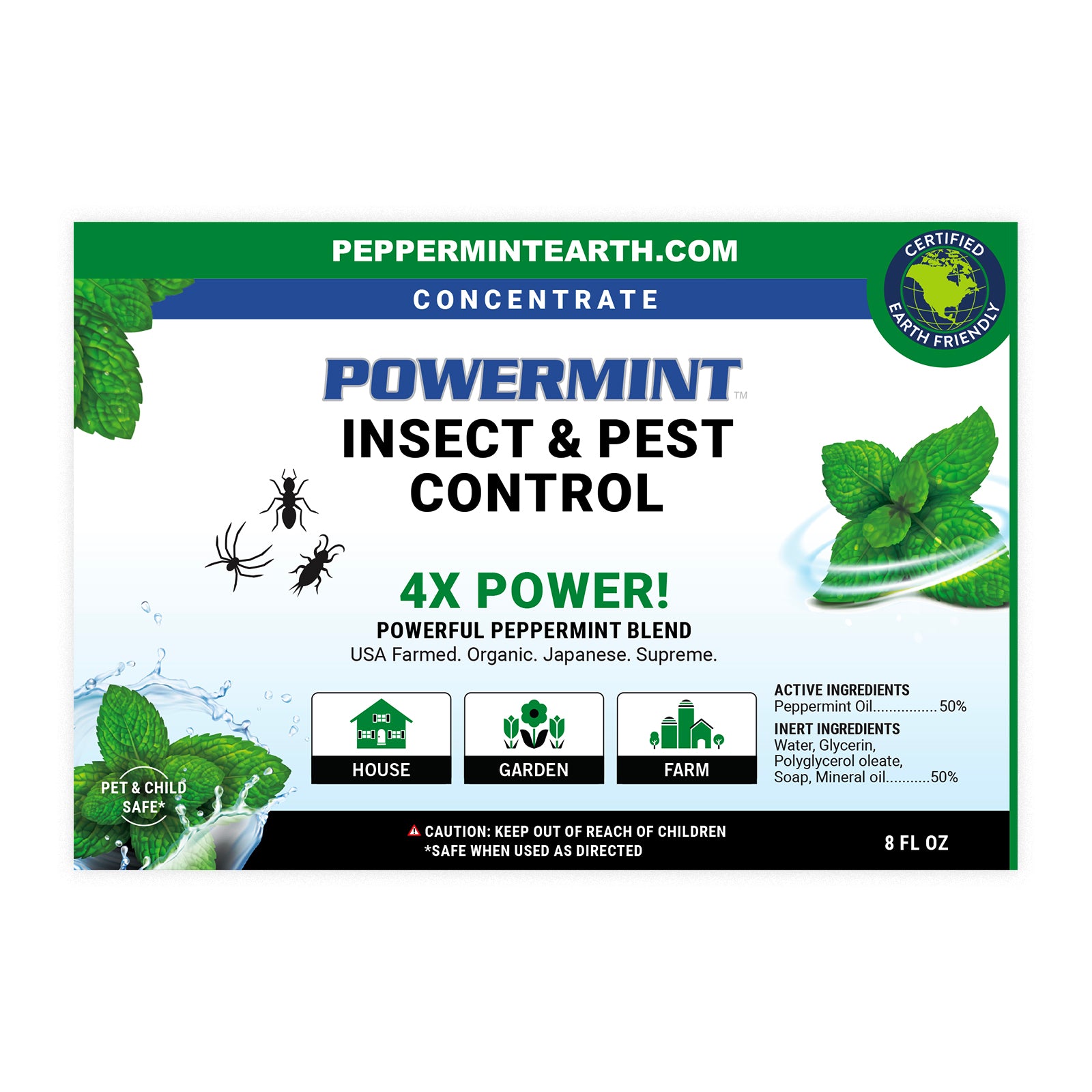 Powermint Insect & Pest Control concentrate allows you to save money by mixing the concentrate with water in your own container. The 8oz concentrate makes 1 gallon of spray. Great for refilling an empty Powermint 1 Gallon sprayer! Makes a powerful spray designed to keep insects away. Formulated with real natural peppermint essential oils. Peppermint is an extremely effective repellent for ants and spiders. Safe for your family when used as directed. Certified Earth Friendly. - Masters of Peppermint since 2010.